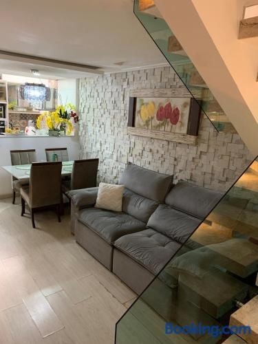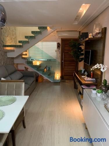 Sobrado em condomínio à 700 m da praia Asturias Guarujá - SP ตั้งอยู่ในกัวรูจา ห่างจากสถานีขนส่งกัวรูจา 3 กม. และห่างจากสวน Restingas of Bertioga Estadual Park 43 กม