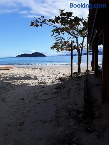 Offering sea views, Chalé Praia da Almada is an accommodation located in Ubatuba, a few steps from Almada and 38 km from Ubatuba Bus Station.