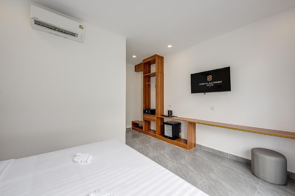 โซโห วิลลา แอนด์ รีสอร์ตซึ่งตั้งอยู่ใน เขมรภูมินทร์ อยู่ห่างจาก ตลาด Dong Tong Market และ ด่านตรวจคนเข้าเมืองชัมเยม เพียง 15 นาทีทางรถยนต์เท่านั้น โรงแรมแห่งนี้อยู่ห่างออกไปเป็นระยะทาง 12.1 ไมล์ (19.4 กม.) จาก ป้ายแผ่นดินส่วนที่แคบที่สุด และ 25.7 ไมล์ (41.3 กม.) จาก หาดไฟลิน สิ่งอำนวยความสะดวกมากมาย เช่น สระว่ายน้ำกลางแจ้ง ซาวน่า และฟิตเนส ที่คุณไม่ควรพลาดโอกาสใช้บริการ สิ่งอำนวยความสะดวกอื่นๆ ที่มีให้บริการที่โรงแรมแห่งนี้ ได้แก่ บริการ Wi-Fi ฟรี, บริการคอนเซียร์จ และเตาย่างถ่าน ลองชิมเมนูอร่อยที่ห้องอาหาร ร้านกาแฟ/คาเฟ่ หรือจะสั่งอาหารส่งตรงถึงห้องจากรูมเซอร์วิส (จำกัดเวลาบริการ) ของโรงแรมก็สะดวกสบายไปอีกแบบ เอ็นจอยเครื่องดื่มแก้วโปรดในบรรยากาศสบายๆ ที่บาร์/เลานจ์ หรือบาร์ริมสระว่ายน้ำ มีบริการอาหารเช้าแบบปรุงตามสั่ง (คิดค่าบริการ) ทุกวัน ตั้งแต่ 6:00 น. ถึง 10:00 น. มีบริการอำนวยความสะดวก เช่น บริการซักรีด/ซักแห้ง ฝ่ายต้อนรับ 24 ชั่วโมง และที่ฝากกระเป๋าเดินทาง ที่พักมีบริการที่จอดรถฟรี ห้องพัก 106 ห้อง มีมินิบาร์ เพื่อให้คุณรู้สึกเหมือนอยู่บ้าน ห้องพักมีระเบียงส่วนตัว ภายในห้องพักมีบริการบริการ Wi-Fi ฟรี เพื่อการเชื่อมต่อออนไลน์ที่ไม่หยุดนิ่ง ห้องน้ำส่วนตัวมีฝักบัว พร้อมของใช้ในห้องน้ำฟรี และไดร์เป่าผม