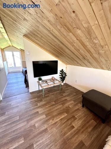 Loft du lac style scandinave ตั้งอยู่ในอัลมาของภูมิภาคควิเบก และให้บริการสวน อพาร์ตเมนต์นี้มีบริการที่จอดรถส่วนตัวฟรี และอยู่ในบริเวณที่ผู้เข้าพักสามารถทำกิจกรรมต่าง ๆ เช่น เดินป่าและปั่นจักรยาน อพาร์ตเมนต์นี้มี 1 ห้องนอน 1 ห้องน้ำ ชุดเครื่องนอน...