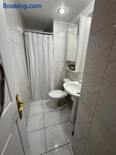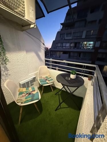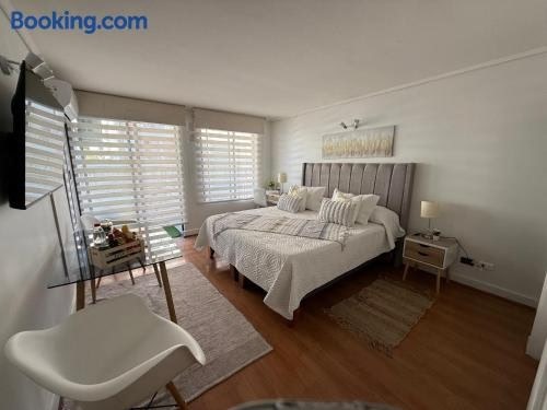 Depto Estudio 2 personas Las Condes ให้บริการลานระเบียงและแผนกต้อนรับตลอด 24 ชั่วโมง โดยมีทำเลที่ตั้งอันยอดเยี่ยมในเขต Las Condes ของซานติอาโก ห่างจากสวนอาเรากาโน 1.7 กม. และห่างจาก Costanera Center 4.1 กม