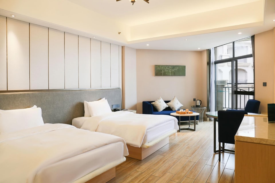 The Wanda Realm North Bay Hotel (Xiamen) is a sprawling property located by the sea, close to Jimei University, College Village and Jiageng Park. An 8-minute drive sees guests to Xiamen Gaoqi International Airport.The hotel's attractive grounds feature blue swimming pools and palm trees and many of the well-appointed, comfortable rooms and suites offer harbor-view balconies that take in the sweeping vistas of Xiamen's North Bay. All rooms feature broadband Internet and Wi-Fi.A large banquet hall is on hand for business and private events and meetings and other facilities include a fitness center, tennis court and spa.