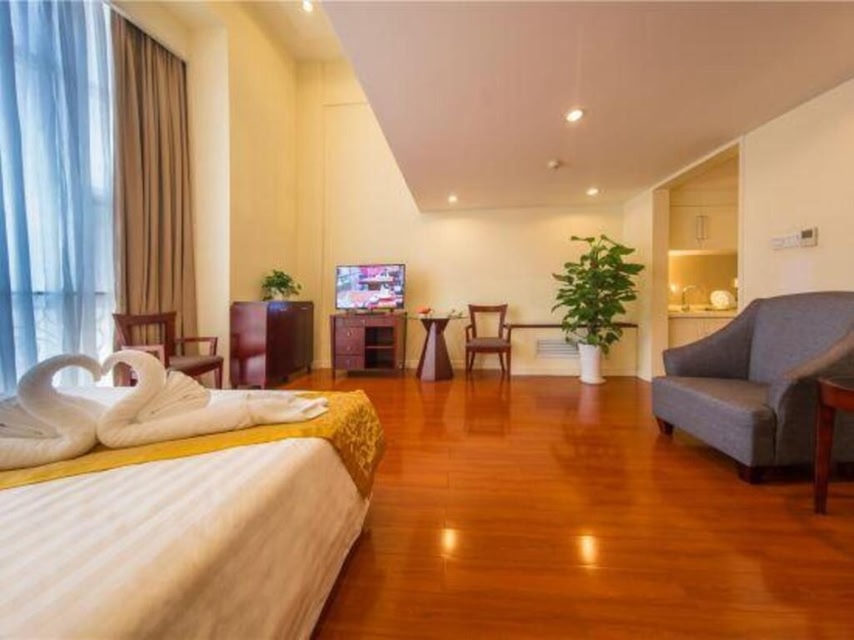 Location A perfect fit for a big group of travellers: apartment «Meiya International Apartment» is located in Yantai. This apartment is located in 3 km from the city center.At the apartment It’s time to have a nice meal! Stop by the restaurant. If you travel by car, you can park in a parking zone. Sports fans are going to love a gym. You can arrange a business meeting, a board meeting, and even a job interview as there is a business center. Accessible for guests with disabilities: the elevator helps them to go to the highest floors. At the guests’ disposal, there’s also a laundry, dry cleaning, ironing and a concierge.Room amenities In the room, there is a TV and slippers. Please note that the listed services may not be available in all the rooms.