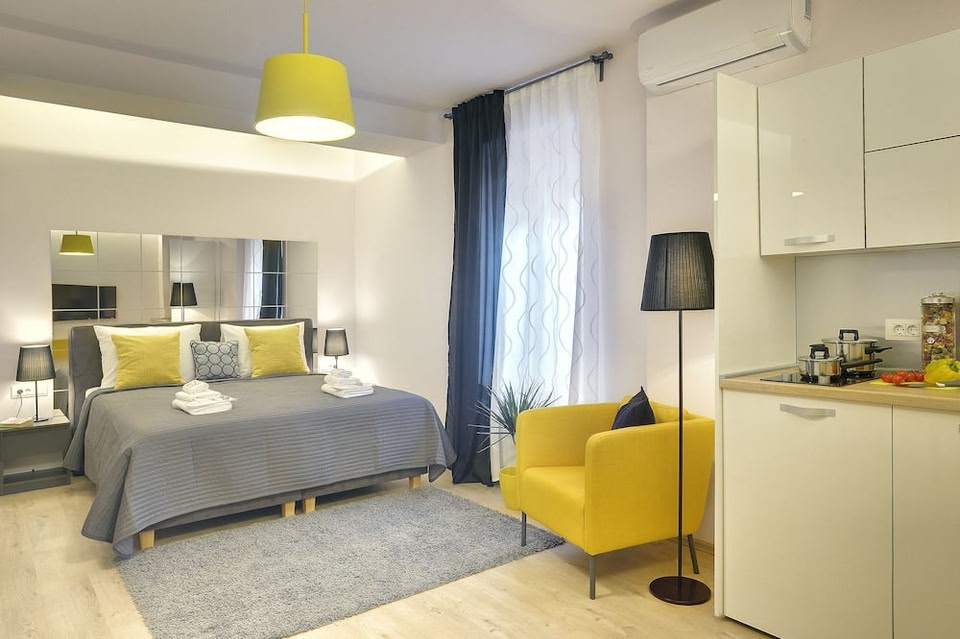 หากคุณเลือกพักที่D&A Center Apartmentsใน Pula แค่เดินไม่กี่ก้าวก็จะถึง คาสิโนซันทอง และ ประตูเฮอร์คิวลิส โรงแรมแห่งนี้อยู่ห่างออกไปเป็นระยะทาง 0.2 ไมล์ (0.3 กม.) จาก อุโมงค์หลบภัยใต้ดินเซโรสทรัสเซ และ 0.2 ไมล์ (0.4 กม.) จาก ดวอยนา วราตา ใช้เวลาว่างไปกับกิจกรรมสนุกๆ กับจักรยานให้เช่า หรือบริการอื่นๆ เช่น บริการ Wi-Fi ฟรี และบริการจองทัวร์/ตั๋ว มีบริการอำนวยความสะดวก เช่น บริการเช็กอินด่วน บริการเช็กเอาต์ด่วน และกล่องนิรภัยที่ฝ่ายต้อนรับ ผู้เข้าพักสามารถใช้บริการรถรับส่งสนามบิน (ตามคำขอ) โดยมีค่าบริการ ห้องพักพร้อมเครื่องปรับอากาศทั้ง 7 ห้อง มีตู้เย็น และทีวีจอแบน เพื่อให้คุณรู้สึกเหมือนอยู่บ้าน ภายในห้องพักมีบริการ Wi-Fi ฟรี เพื่อการเชื่อมต่อออนไลน์ที่ไม่หยุดนิ่ง และโทรทัศน์ต่อสัญญาณดาวเทียมเพื่อความบันเทิง ห้องน้ำเป็นแบบฝักบัว พร้อมของใช้ในห้องน้ำฟรีและไดร์เป่าผม สิ่งอำนวยความสะดวกภายในห้อง ได้แก่ ตู้นิรภัย และโต๊ะทำงาน พร้อมบริการทำความสะอาดทุกวัน