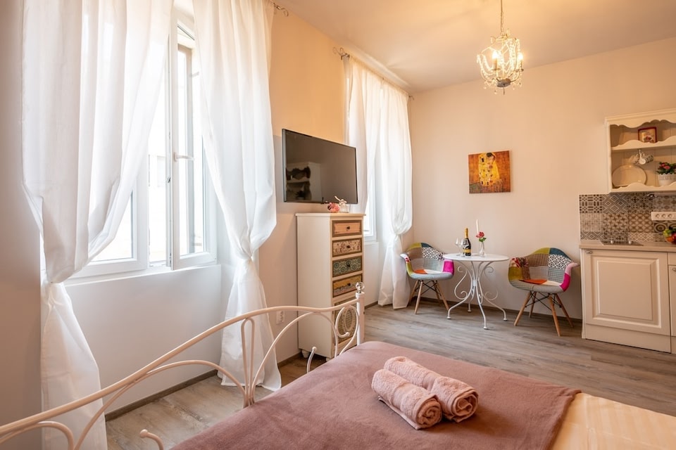 หากคุณเลือกพักที่โอลด์ซิตี้สตูดิโอส์ 2 - เฉพาะผู้ใหญ่เท่านั้นใน Pula เดินเพียง 5 นาทีคุณก็จะถึง Arch of the Sergians และ โรงละครโรมัน อพาร์ตเมนต์แห่งนี้อยู่ห่างออกไปเป็นระยะทาง 0.4 ไมล์ (0.6 กม.) จาก Forum และ 0.4 ไมล์ (0.6 กม.) จาก ศาลากลาง คุณจะรู้สึกสะดวกสบายเหมือนอยู่บ้านในห้องพักที่ตกแต่งอย่างมีเอกลักษณ์ 4 ห้อง พร้อมครัวขนาดเล็กที่มีตู้เย็นและเตาประกอบอาหาร ภายในห้องพักมีบริการบริการ Wi-Fi ฟรี เพื่อการเชื่อมต่อออนไลน์ที่ไม่หยุดนิ่ง และทีวีจอแบนต่อสัญญาณดาวเทียม เพื่อความบันเทิง สิ่งอำนวยความสะดวกภายในห้องมีผ้าม่านกันแสง คุณสามารถขออุปกรณ์หรือบริการเสริม เช่น เตารีด/โต๊ะรีดผ้า