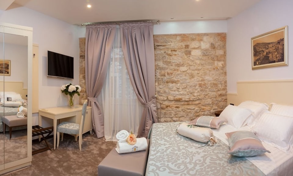 เข้าพักที่ Heritage Hotel Antique Splitในใจกลางเมือง สปลิต เดินไม่กี่ก้าวก็ถึง พระราชวังของ Diocletian และ อนุสาวรีย์ Gregory of Nin โรงแรมแห่งนี้ อยู่ห่างออกไปเป็นระยะ 0.4 ไมล์ (0.6 กม.) จาก วิหาร Cathedral of Saint Domnius และ 0.4 ไมล์ (0.6 km) จาก Split Riva เดินชมวิวจากลานระเบียง หรือลองใช้บริการอื่นๆ เช่น บริการ Wi-Fi ฟรี และบริการคอนเซียร์จ สิ่งอำนวยความสะดวกอื่นๆ ที่มีให้บริการที่โรงแรมแห่งนี้ ได้แก่ บริการจัดงานแต่งงาน และทีวีในส่วนกลาง ลองชิมเมนูอร่อยที่ห้องอาหาร หรือสั่งอาหารส่งตรงถึงห้องจากรูมเซอร์วิส 24 ชม. ของโรงแรมเพื่อความสะดวกสบายอีกแบบ มีบริการอาหารเช้าแบบท้องถิ่นฟรีทุกวัน ตั้งแต่ 7:30 น. ถึง 10:30 น. มีบริการอำนวยความสะดวก เช่น บริการเช็กอินด่วน บริการเช็กเอาต์ด่วน และบริการซักรีด/ซักแห้ง มีบริการรถรับส่งสนามบิน (24 ชั่วโมง) โดยคิดค่าบริการและมีที่จอดรถแบบคิดค่าบริการภายในโรงแรม คุณจะรู้สึกสะดวกสบายเหมือนอยู่บ้านในห้องพักที่ตกแต่งอย่างมีเอกลักษณ์ 8 ห้อง พร้อมด้วยมินิบาร์และทีวีจอแบน ภายในห้องพักมีบริการ Wi-Fi ฟรี เพื่อการเชื่อมต่อออนไลน์ที่ไม่หยุดนิ่ง และโทรทัศน์ต่อสัญญาณเคเบิลเพื่อความบันเทิง ห้องน้ำส่วนตัวมีฝักบัว พร้อมของใช้ในห้องน้ำระดับพรีเมียม และไดร์เป่าผม สิ่งอำนวยความสะดวกภายในห้อง ได้แก่ โทรศัพท์ ตู้นิรภัย และโต๊ะทำงาน