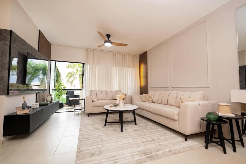Pool & Gym - 10 min Aeropuerto y HOMS - Dream Stay มีวิวสวนและให้บริการที่พักพร้อมสระว่ายน้ำกลางแจ้งและระเบียง โดยอยู่ห่างจากอนุสรณ์สถาน Monumento a los Heroes de la Restauracion ประมาณ 6.3 กม.