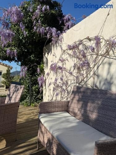 Gite climatisé avec piscine sur les hauteurs de Bollene เป็นที่พักซึ่งมีสระว่ายน้ำกลางแจ้งแบบเปิดตามฤดูกาลและลานระเบียง โดยมีทำเลที่ตั้งอยู่ในโบลแลน ห่างจากช่องเขา Ardeche Gorges 45 กม. ห่างจากซุ้มหินโค้ง Pont d ' Arc 46 กม. และห่างจาก The wine University 8.6 กม. บ้านพักนี้มีบริการสระว่ายน้ำส่วนตัว สวน สิ่งอำนวยความสะดวกสำหรับทำบาร์บีคิว อินเทอร์เน็ตไร้สาย (WiFi) ฟรี และที่จอดรถส่วนตัวฟรี บ้านพักติดตั้งเครื่องปรับอากาศนี้ประกอบด้วย 1 ห้องนอน ห้องนั่งเล่น ห้องครัวซึ่งครบครันด้วยตู้เย็นและเครื่องชงกาแฟ และมี 1 ห้องน้ำพร้อมฝักบัวและไดร์เป่าผม ผ้าเช็ดตัวและชุดเครื่องนอนมีให้บริการในบ้านพักนี้