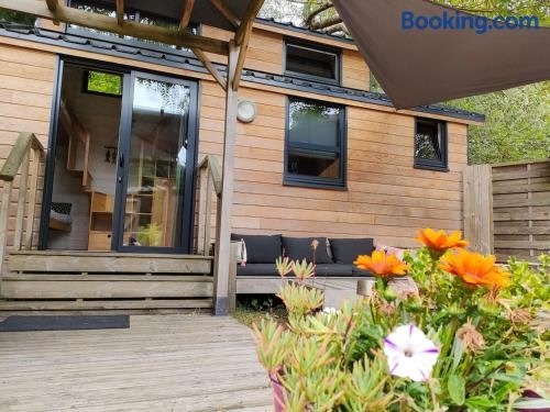 Tréflez 내에 자리한 Tiny house Keremma에서 머물러보세요. 숙소는 케레마 비치에서 13분 거리, 브레스트 국립 해양 박물관에서 38km, National Botanical Conservatory of Brest에서 36km 거리에 있습니다. 구내에는 전용 주차장이 마련되어 있습니다. 이 샬레에는 침실 3개, 욕실 1개, 침대 린넨, 수건, 평면 TV , 각종 시설을 완비한 주방, 정원 전망을 갖춘 테라스가 마련되어 있습니다...