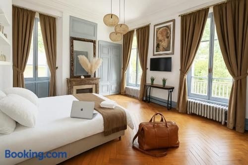 Appartement 100 m 2 d ' élégance au sein d ' un Château caché à 10 min de Lyon ให้บริการที่พักในวีเลอร์บานพร้อมอินเทอร์เน็ตไร้สาย (WiFi) ฟรีและมีวิวสวน นอกจากนี้ก็ยังมีบริการส ระว่ายน้ำกลางแจ้งแบบเปิดตามฤดูกาล สวน และลานระเบียง...