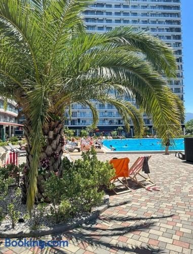 1412-Batumi - Studio See view มอบบริการที่พักในบาทูมิพร้อมอินเทอร์เน็ตไร้สาย (WiFi) ฟรีและมีวิวทะเล นอกจากนี้ก็ยังให้บริการสระว่ายน้ำกลางแจ้ง สวน และห้องอาหาร อพาร์ตเมนต์นี้มีบริการที่พักติดตั้งเครื่องปรับอากาศพร้อมระเบียง อพาร์ตเมนต์นี้มี 1 ห้องนอน...