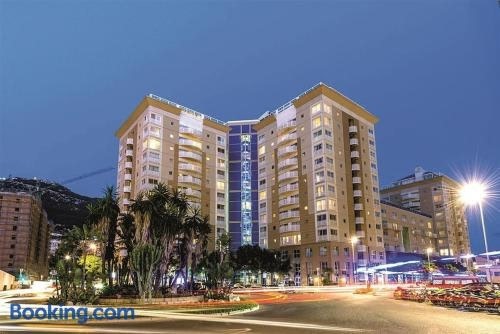 NEW with AC Central Suites with Pool access and Squash Courts ! Sleeps Family or 4 guests ให้บริการที่พักในยิบรอลตาร์พร้อมอินเทอร์เน็ตไร้สาย (WiFi) ฟรีและมีวิวเมือง นอกจากนี้ก็ยังมีบริการสระว่ายน้ำกลางแจ้ง ลานระเบียง และบาร์...