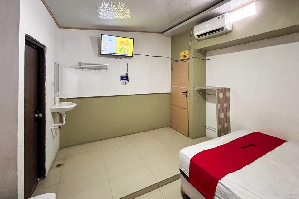 RedDoorz Syariah at Hostel Imah 3 Lampung มีบริการที่พักติดตั้งเครื่องปรับอากาศใน Kedaton ที่ RedDoorz Syariah at Hostel Imah 3 Lampung ทุกห้องประกอบด้วยโต๊ะ โทรทัศน์จอแบน ห้องน้ำแบบส่วนตัว ชุดเครื่องนอน และผ้าเช็ดตัว สนามบิน Radin Inten II...