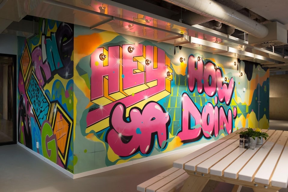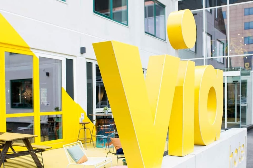 Located 10 minutes by metro from the city center, Via Amsterdam is a design-led hybrid hostel and hotel with street art and urban design featured throughout the building.