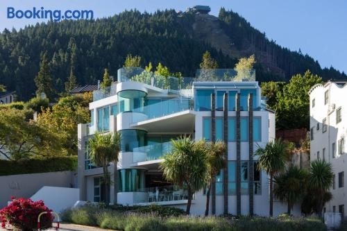 Q 1 Luxury Central Apartment ให้บริการที่พักพร้อมระเบียงและอินเทอร์เน็ตไร้สาย (WiFi) ฟรี โดยตั้งอยู่ในควีนส์ทาวน์ ห่างจากเครื่องเล่น Skyline Gondola and Luge 900 ม. ห่างจากควีนส์ทาวน์อีเวนท์เซ็นเตอร์ 8.5 กม. และห่างจากทะเลสาบวากาติปู 13 กม.