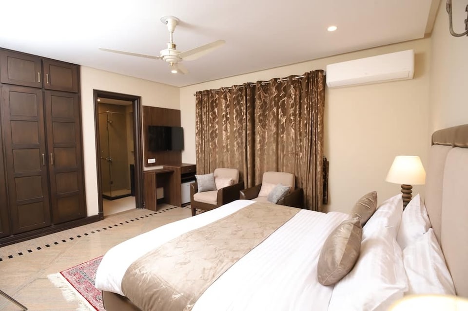 Margalla Hill Residencia ligt in de wijk Sector F7 in Islamabad. Voor een middagje winkelen kun je bij Safa Gold Mall en The Raja Bazaar heerlijk rondstruinen, terwijl natuurliefhebbers juist bij Margalla Hills National Park en Rawal-meer hun hart kunnen ophalen. Wil je tijdens je bezoek graag van een evenement of wedstrijd genieten? Bekijk wat Jinnah Sportstadion of Rawalpindi Cricket Stadium op het programma heeft staan. Hotel met gratis ontbijt en een restaurant in IslamabadDit hotel beschikt over een restaurant, een stomerij/wasserijservice en een wasserij. Gratis continentaal ontbijt, gratis wifi in gemeenschappelijke ruimtes en gratis parkeerplaatsen worden ook voorzien. Je vindt er ook een 24-uurs receptie. De huishoudservice is op verzoek beschikbaar. Margalla Hill Residencia heeft 9 kamers. In dit hotel in Islamabad is wifi gratis, met een snelheid van 100+ Mbps (voor 1-2 personen of maximaal 6 toestellen). Elke badkamer is voorzien van een bad of douche. Schone handdoeken en schoon beddengoed zijn op verzoek beschikbaar. Een schoonmaakservice is op verzoek beschikbaar.