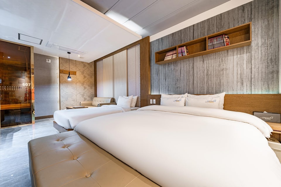 แอร์พอร์ตโฮเทลตั้งอยู่ใน ปูซาน (เขตกังซอ) ขับรถออกไปเพียง 15 นาทีก็จะถึง ห้างสรรพสินค้าลอตเต้ สาขาหลักปูซาน และ Gukje Market โรงแรมแห่งนี้อยู่ห่างออกไปเป็นระยะทาง 12.3 ไมล์ (19.8 กม.) จาก หาดกวานกาลี่ และ 16.2 ไมล์ (26 กม.) จาก หาดแฮอึนแด บริการสิ่งอำนวยความสะดวกต่างๆ สำหรับคุณ เช่นบริการ Wi-Fi ฟรี และตู้ขายของอัตโนมัติ แวะหาของทานเล่นรองท้องได้ที่สแน็คบาร์/เดลี่ของแอร์พอร์ตโฮเทล มีบริการอำนวยความสะดวก เช่น อินเทอร์เน็ตความเร็วสูงแบบเชื่อมต่อสายฟรี ศูนย์ธุรกิจ และที่ฝากกระเป๋าเดินทาง มีบริการรถรับส่งสนามบินฟรี (ตามคำขอ) ให้รางวัลกับตัวเองโดยการเข้าพักในห้องที่ตกแต่งอย่างมีเอกลักษณ์ 50 ห้อง พร้อมด้วยพื้นอุ่นและทีวีจอแบน ภายในห้องพักมีคอมพิวเตอร์ที่มาพร้อมกับบริการสัญญาณอินเตอร์เน็ตไร้สายและมีสายฟรีเพื่อการเชื่อมต่อออนไลน์ที่ไม่หยุดนิ่ง และโทรทัศน์ต่อสัญญาณดิจิตอลเพิ่มความบันเทิงอีกระดับ ห้องน้ำส่วนตัว ที่มีอ่างอาบน้ำและฝักบัวแยกจากกัน พร้อมด้วยอ่างอาบน้ำแบบหัวเจ็ต และของใช้ในห้องน้ำฟรีสิ่งอำนวยความสะดวกภายในห้อง ได้แก่ โทรศัพท์ โต๊ะทำงาน และตู้เย็น