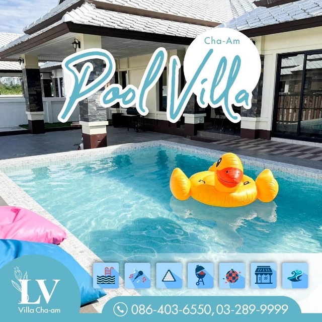 LV Villa Cha-am ใน Ban Bo Khaem มีวิวสระว่ายน้ำ และมีบริการที่พักพร้อมสระว่ายน้ำกลางแจ้ง สวน และเลานจ์ส่วนกลาง ที่พักมีเครื่องปรับอากาศและห้องครัวที่มีอุปกรณ์ครบครันพร้อมพื้นที่รับประทานอาหาร รวมถึงมีโทรทัศน์จอแบน และห้องน้ำแบบส่วนตัวที่มีฝักบัว